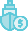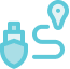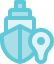 Bright blue umbrellas with water view in the background